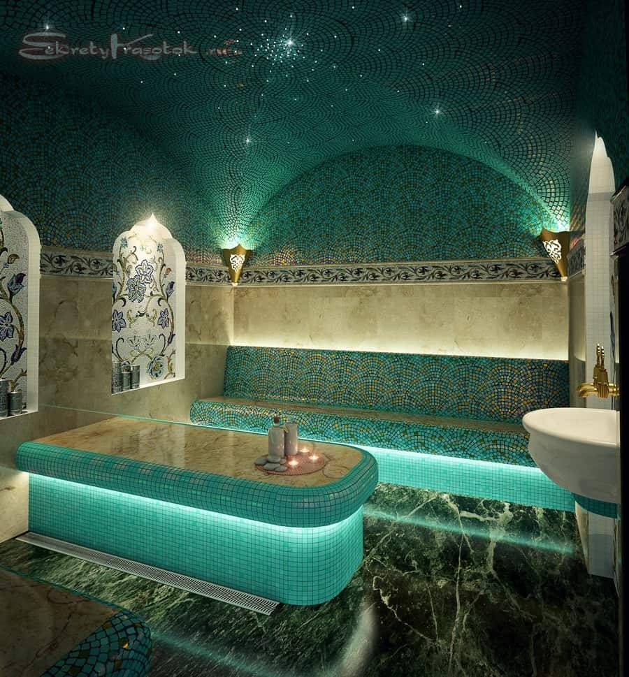 Турецкие бани (оригинальное название – «хаммам») сделаны из камня. В них средняя температура и высокая влажность: сначала прогреваются поверхности, а затем – воздух. В общественных хаммам распространены дополнительные услуги: массаж, пилинг, обработка кожи маслами.