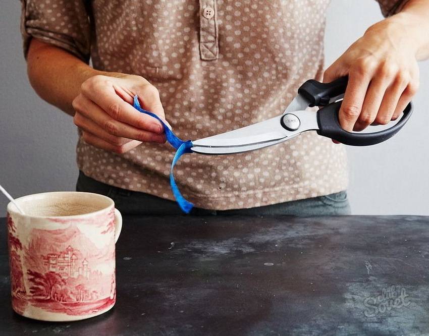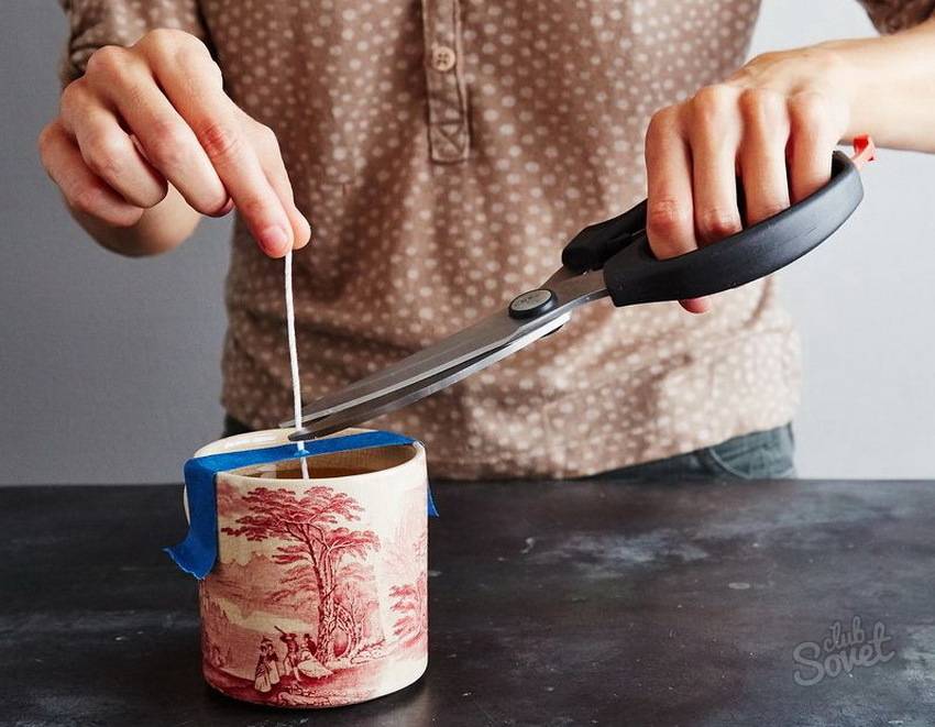 Когда воск полностью затвердеет, обрежьте фитиль до необходимого размера и уберите ленту.