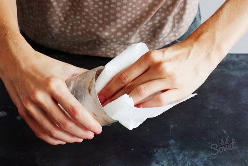 Хорошо протрите форму бумажными полотенцами. Воск необходимо наливать в абсолютно сухую емкость, иначе он может отскочить.