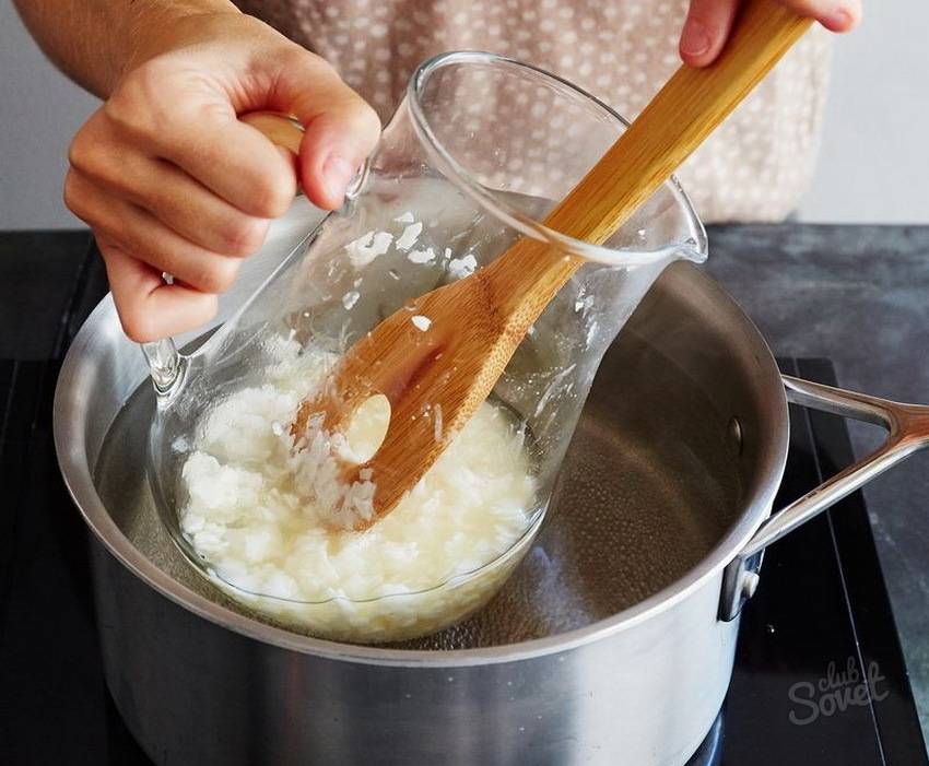 Поместите в неё посуду с воском и растапливайте его, постоянно помешивая , чтобы не было комочков;