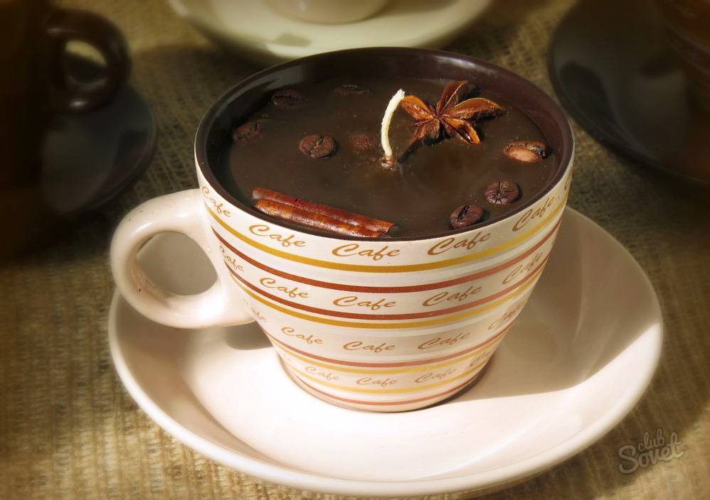 Уже застывшую свечку можно обклеить бамбуком или палочками корицы. К ним можно добавить звёздочки бадьяна или всё те же кофейные зёрнышки. Это будет красивым украшением для аромасвечей.