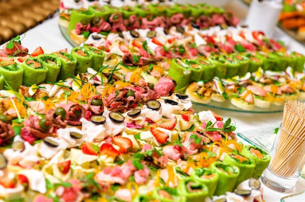 После того, как все гости в сборе, их необходимо сразу чем – нибудь угостить. Как нельзя кстати, подойдут простые и вкусные закуски. Лучше всего их сделать дома, перед самым выездом. Дома, их гораздо удобнее порезать и красиво оформить. Прекрасно подойдут мясные, сырные или овощные нарезки, в сочетании с различными соусами.