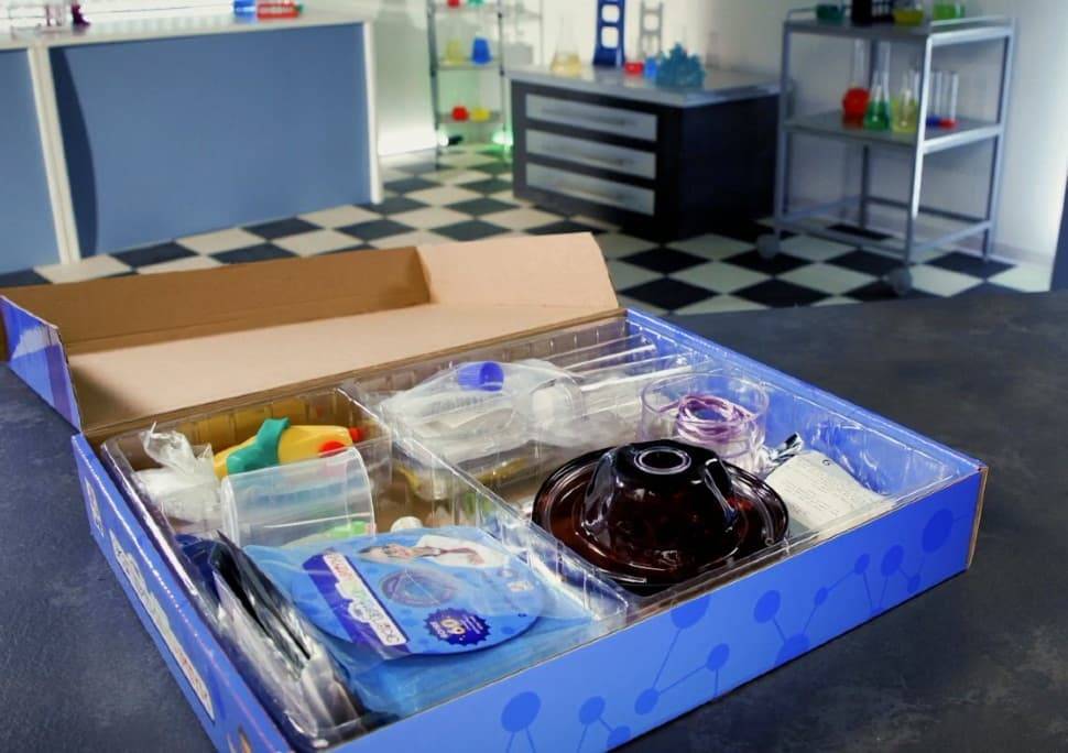 И даже критичные ошибки в процессе выполнения не создадут неприятностей. Производителем учтены меры безопасности. Для проведения опытов имеется все необходимое оборудование: увеличительная лупа, мензурка, стаканчик для замеров, несколько видов пробирок, трубка из силикона, чашки Петри, ложка для замеров, термометр, пипетка, воронка, капельница и очки, которые служат защитой. Очистить все составляющие поможет удобный ершик, для хранения предусмотрен удобный контейнер. Набор включает в себя 45 элементов.