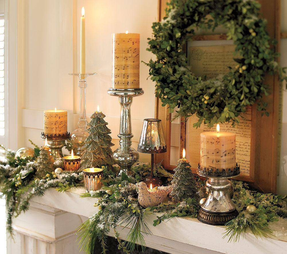 На горизонтальных столешницах мебели и каминной полке можно поставить свечи в подсвечниках ручной работы, разместить памятные семейные фото в новогодних рамочках. В качестве традиционного декора используют палочки корицы, веточки рябины, засушенные дольки цитрусовых и орешки.