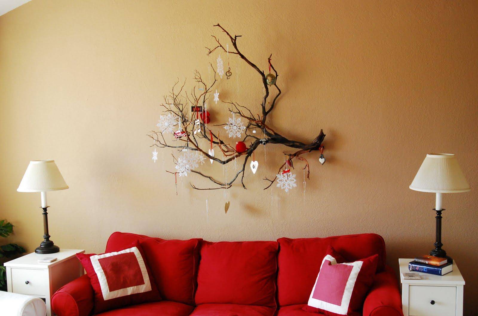 Кто-то рискнёт прикрутить к стене композицию из ветки.Наклейки в виде вытынанок лучше всего клеить на окрашенные стены.Есть множество трафаретов с новогодней и рождественской тематикой. Их можно прикрепить к стене канцелярскими гвоздиками.Самодельный декор тоже смотрится оригинально и красиво.