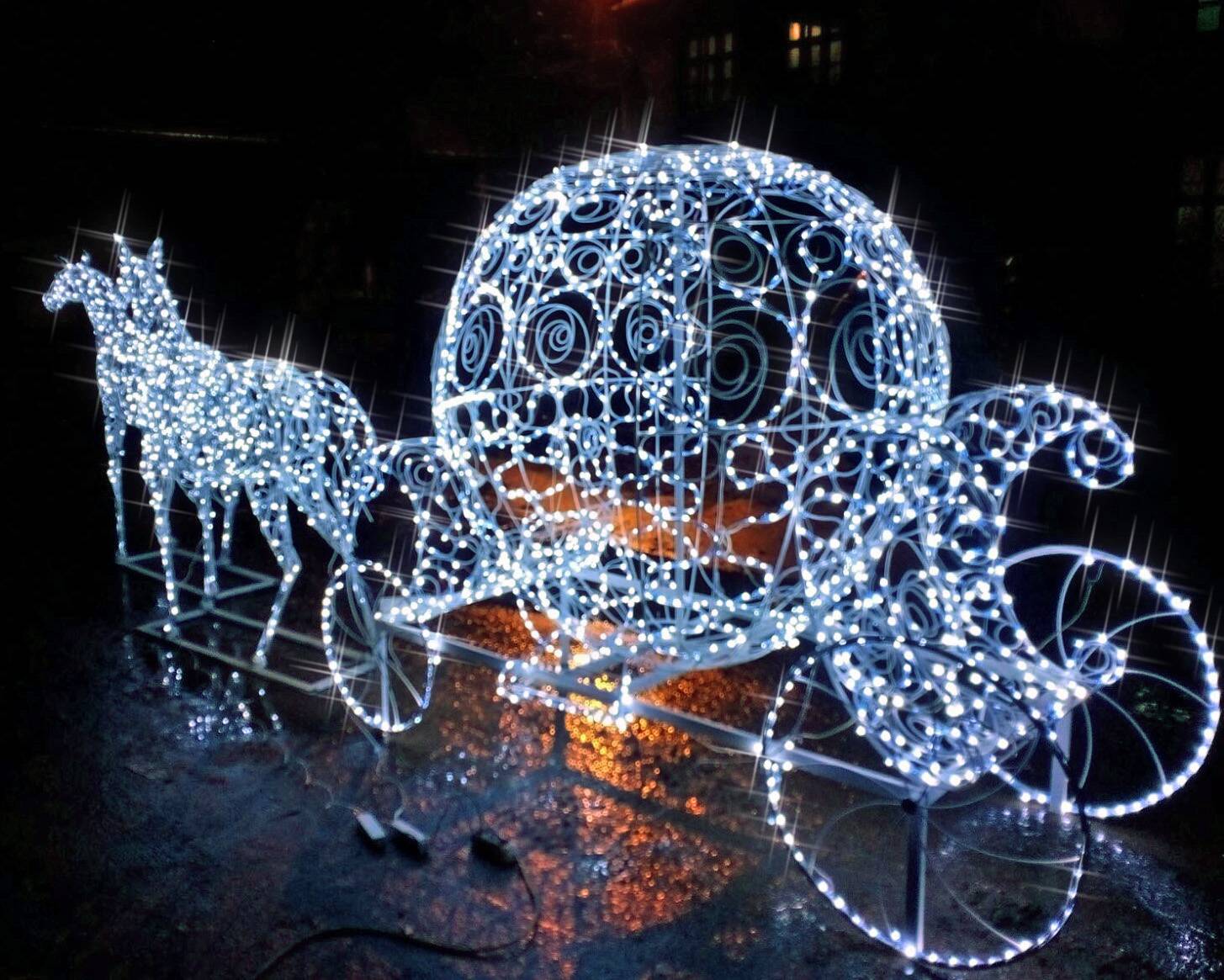 Световые скульптуры очень красиво смотрятся в оформлении заведения к новому году.