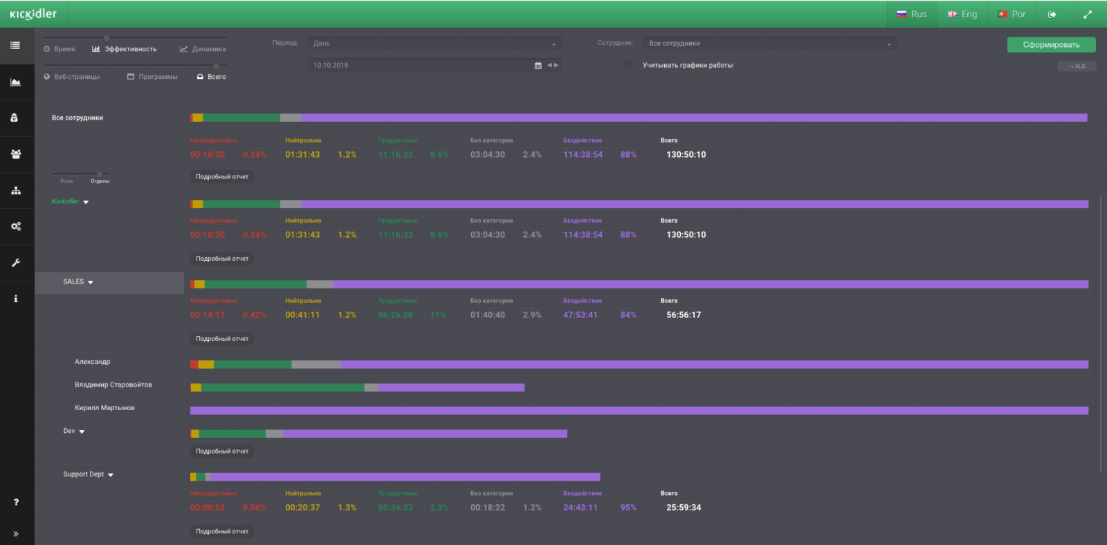 Руководители задействуют Worker, чтобы вести учет рабочего времени, а также собирать статистику использования программ и приложений и посещения веб-ресурсов.