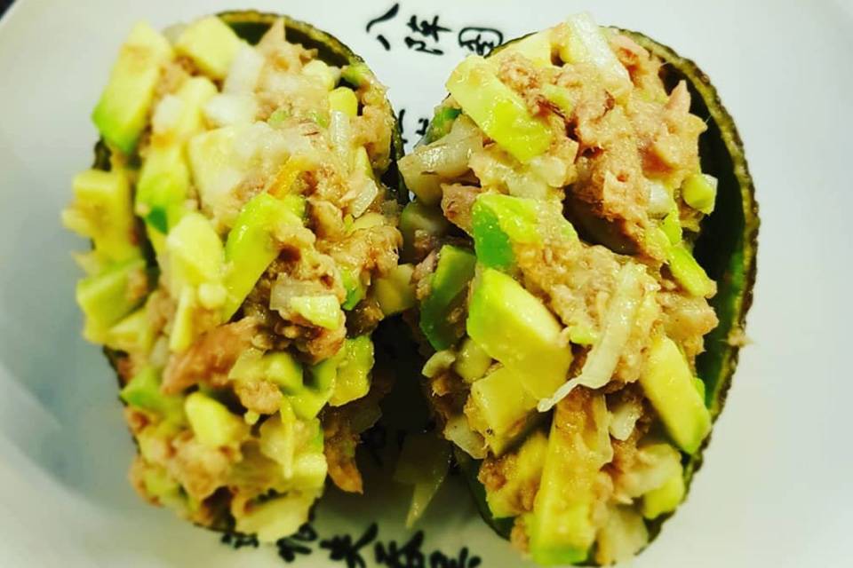 1. Авокадо режем вдоль на две одинаковые половинки, удаляем косточку и мякоть, чтобы получить лодочки – основы для блюда.