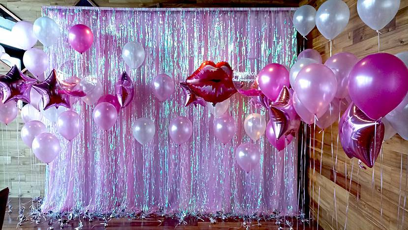 Мастера аэродизайна создают из шариков целые композиции. Хорошая идея для женского Дня рождения — украсить заведение объемными букетами из шаров.