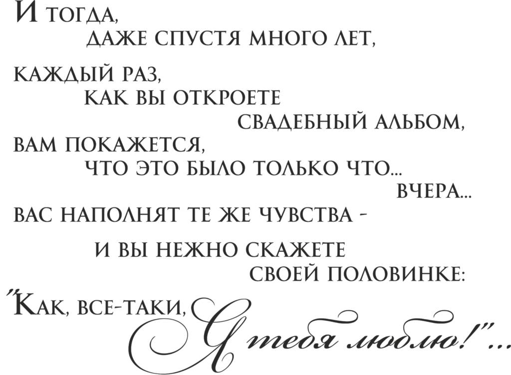 Ведь вы, как пара молодоженов, должны будете представлять гармоничную картину в единое целое.