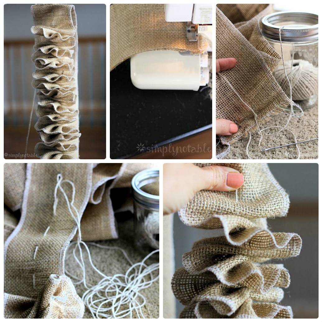 - Нарезать текстильные ленточки. Можно использовать мешковину, атлас, хлопок. Края можно нарочито распушить, подшивать их не нужно.