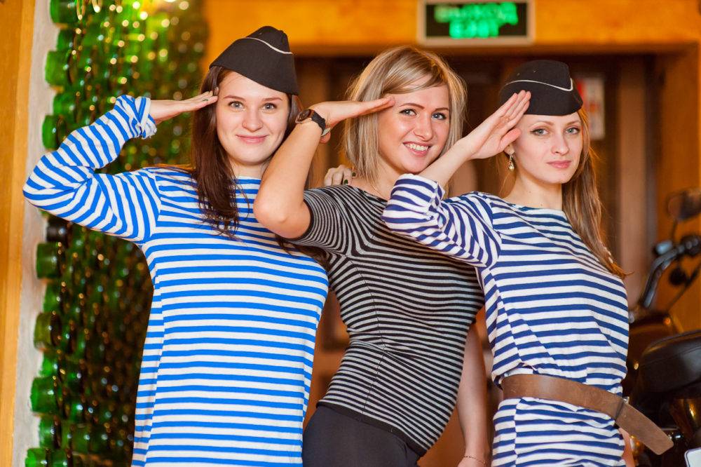 Такие презенты рассчитаны на вечер либо выходной день. А ведь настроение нужно поднять коллегам на весь день. Поэтому преподнести подарок лучше с утра. Можно основательно подготовиться: сделать стенгазету, где будут описаны «подвиги» и интересные поздравления каждому сотруднику-мужчине. Также важен и внешний вид женского пола. Это даст парням прочувствовать, что и вы солидарны с ними, считаете 23 февраля настоящим праздником. Если позволяет дресс-код, то можно надеть одежду камуфляжного цвета. Это будет фурор! Когда облачиться в такого рода наряды не представляется возможным, можно просто повязать шейные платки. Утром проведите построение в шеренгу и отсалютуйте всякому вошедшему мужчине.