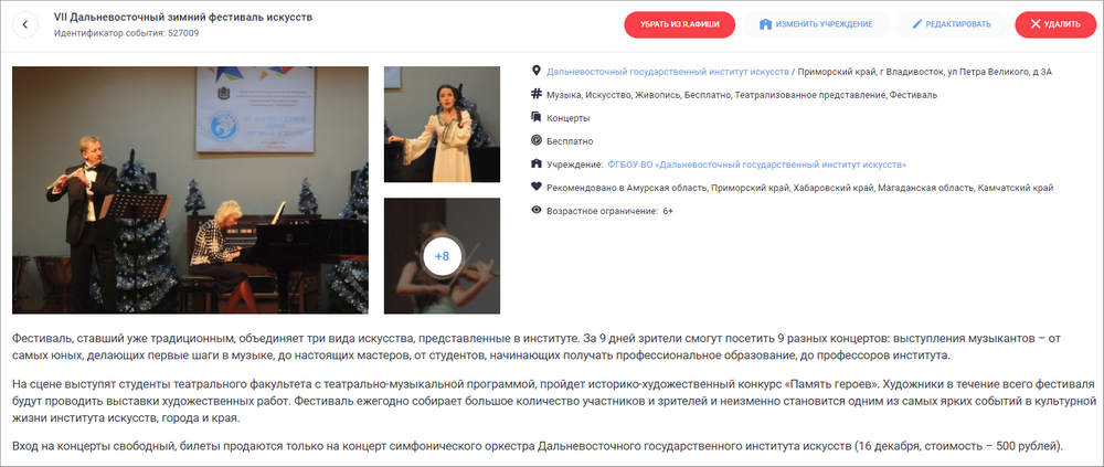 Если событие подготовлено вашим учреждением и проходит на вашей площадке, организатора указывать не нужно – ваше учреждение по умолчанию считается организатором.