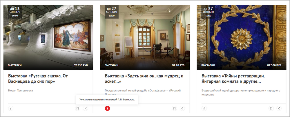 ● для встречи: «Рассказ об истоках создания живописных полотен знаменитого русского художника»;● для выставки: «Живописные и графические работы одарённых детей с ограниченными возможностями по здоровью»;● для концерта: «Выступление международного симфонического оркестра«Таврический»;● для спектакля: «Фронтовая былина по повести писателя Ильи Туричина«Крайний случай»;● для праздника: «Выставки, мастер-классы, встречи мастеров и исследователей».