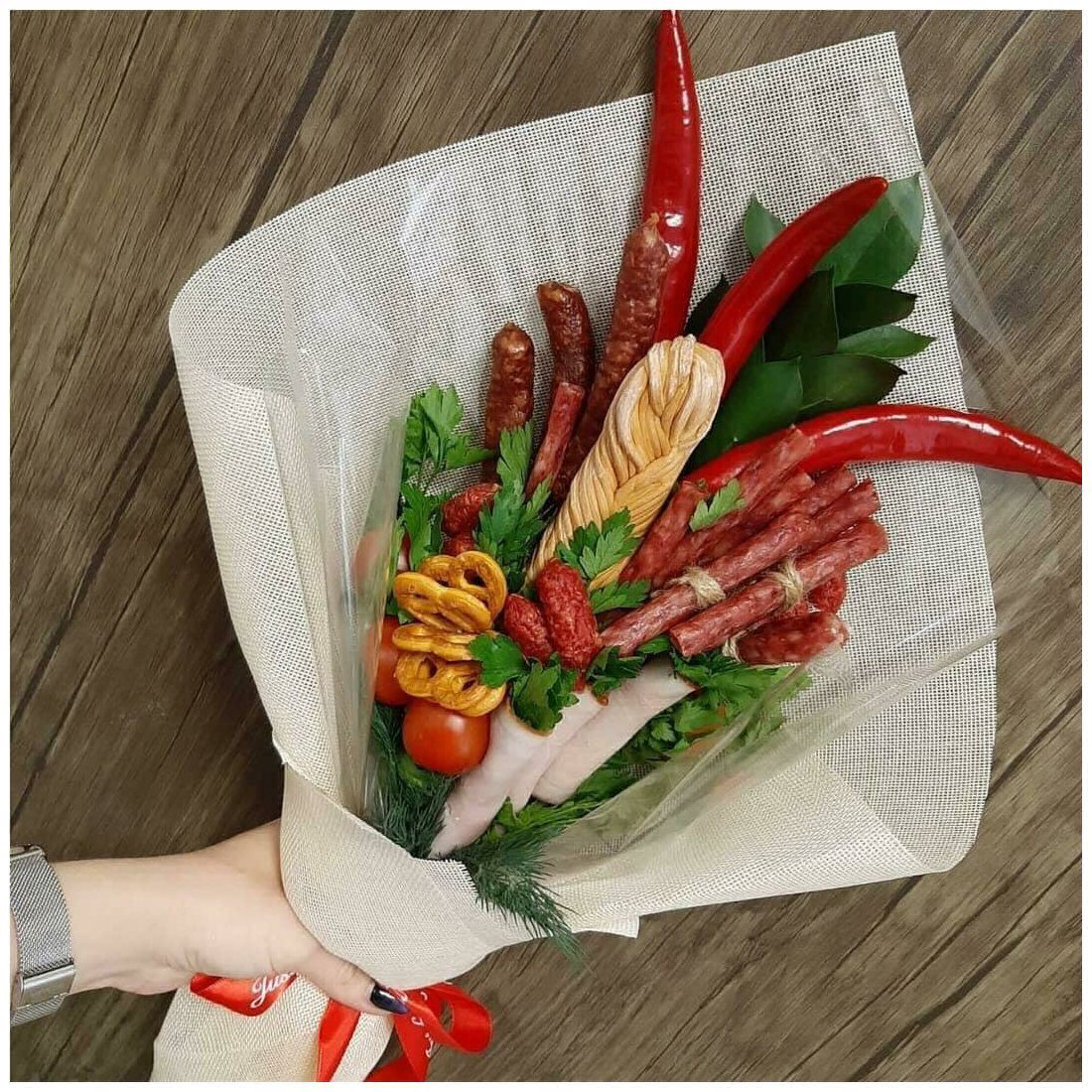 Красивое поздравление и вкусный сюрприз для юбиляра. Букет может быть выполнен в форме цветочной композиции, в шляпной коробке или корзине.