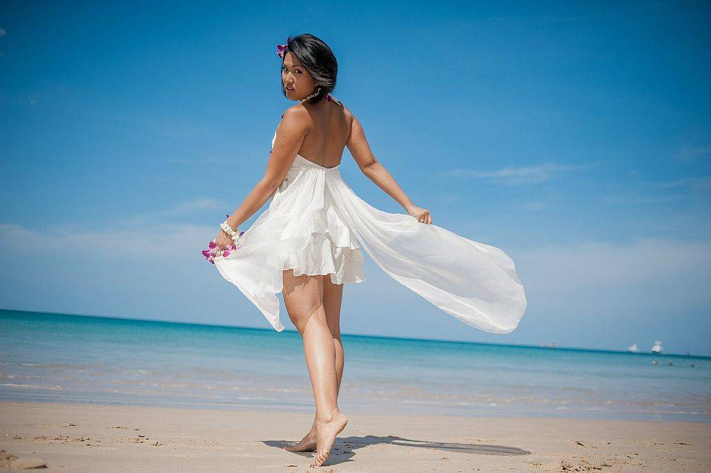 Разумеется, не следует полагать, что для пляжной свадебной церемонии подойдет обычное традиционное платье. Ведь в наряде с обилием пышных юбок, толстым корсетом, в котором невозможно будет элементарно дышать, будет неудобно праздновать такой важный в жизни день. Церемония запомнится тем, как жарко и душно было невесте в своем платье, а вовсе не прекрасным бризом, шепотом волн и золотистым песком.