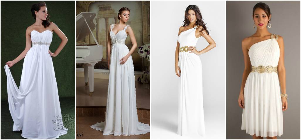 Белый наряд в греческом стиле – классика для бракосочетаний на море