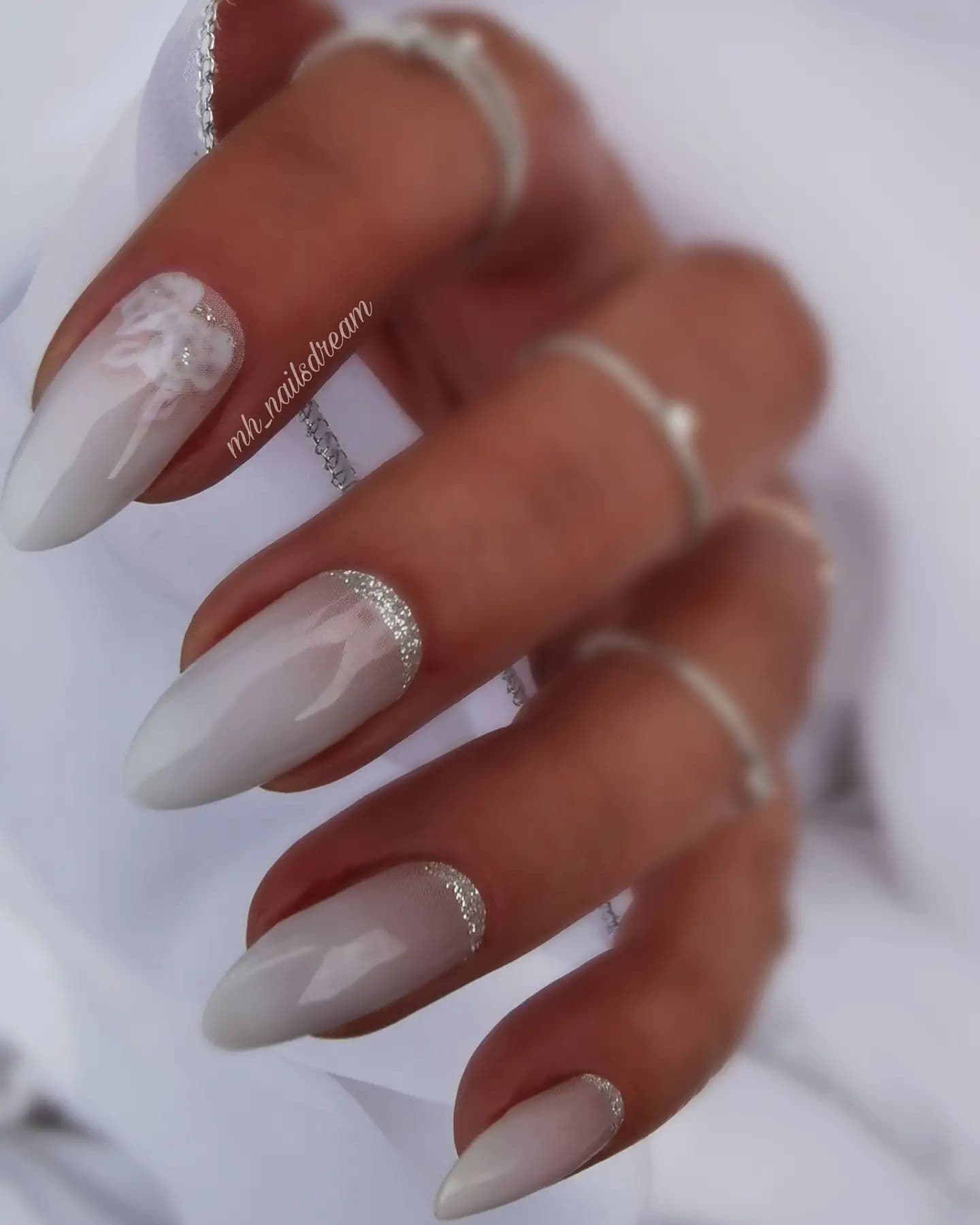 Миндаль считается самой распространенной формой ногтей, а кроме этого еще и самой универсальной. Именно на ней эффектнее всего будет смотреться свадебный вариант маникюра.