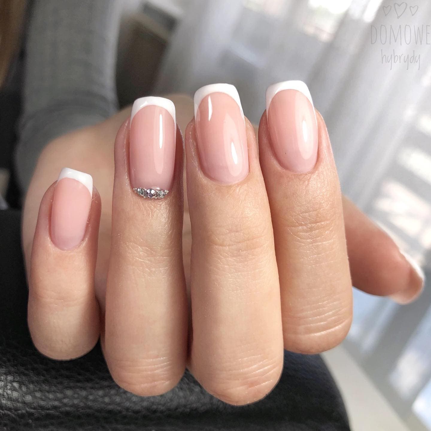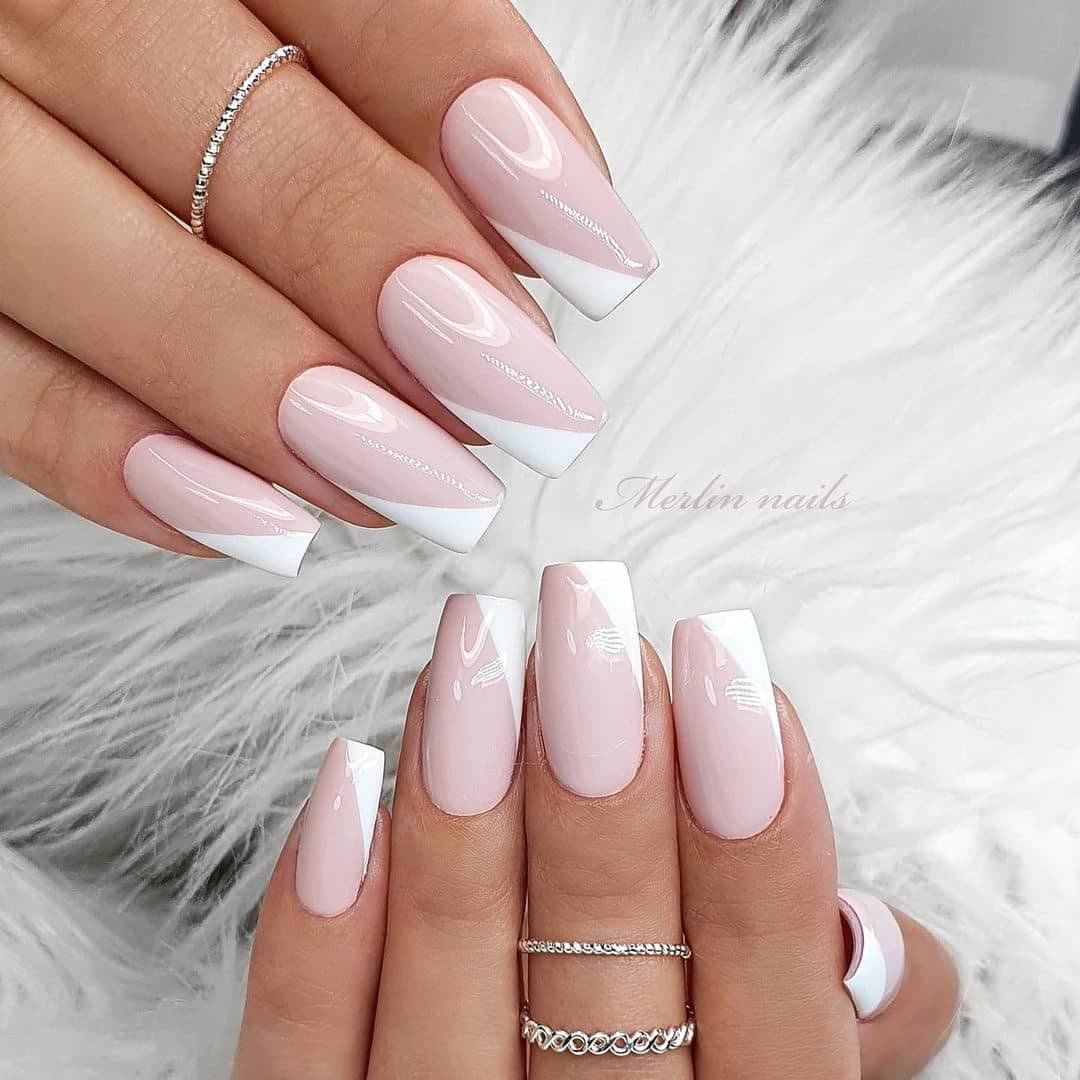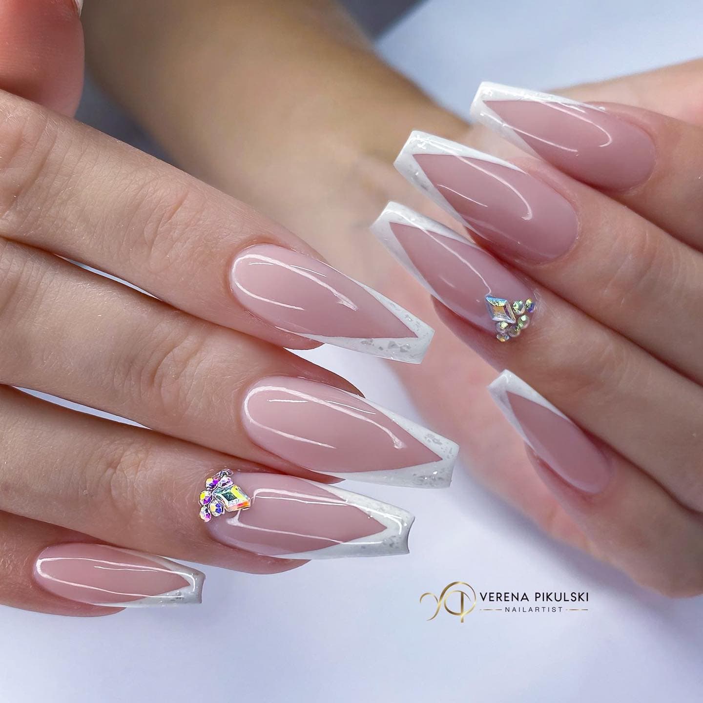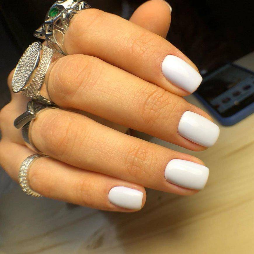 А вот длинные ногти формы квадрат — идеальная база для белого гель-лака и страз.