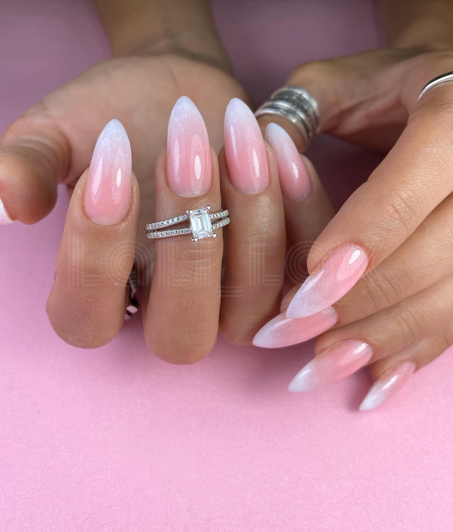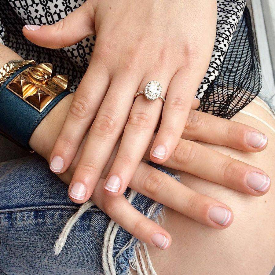 Кстати, вот еще одна причина, по которой стоит выбрать нежный и лаконичный свадебный маникюр: он не должен привлекать внимание к себе больше, чем твое кольцо, когда ты будешь обмениваться им с женихом