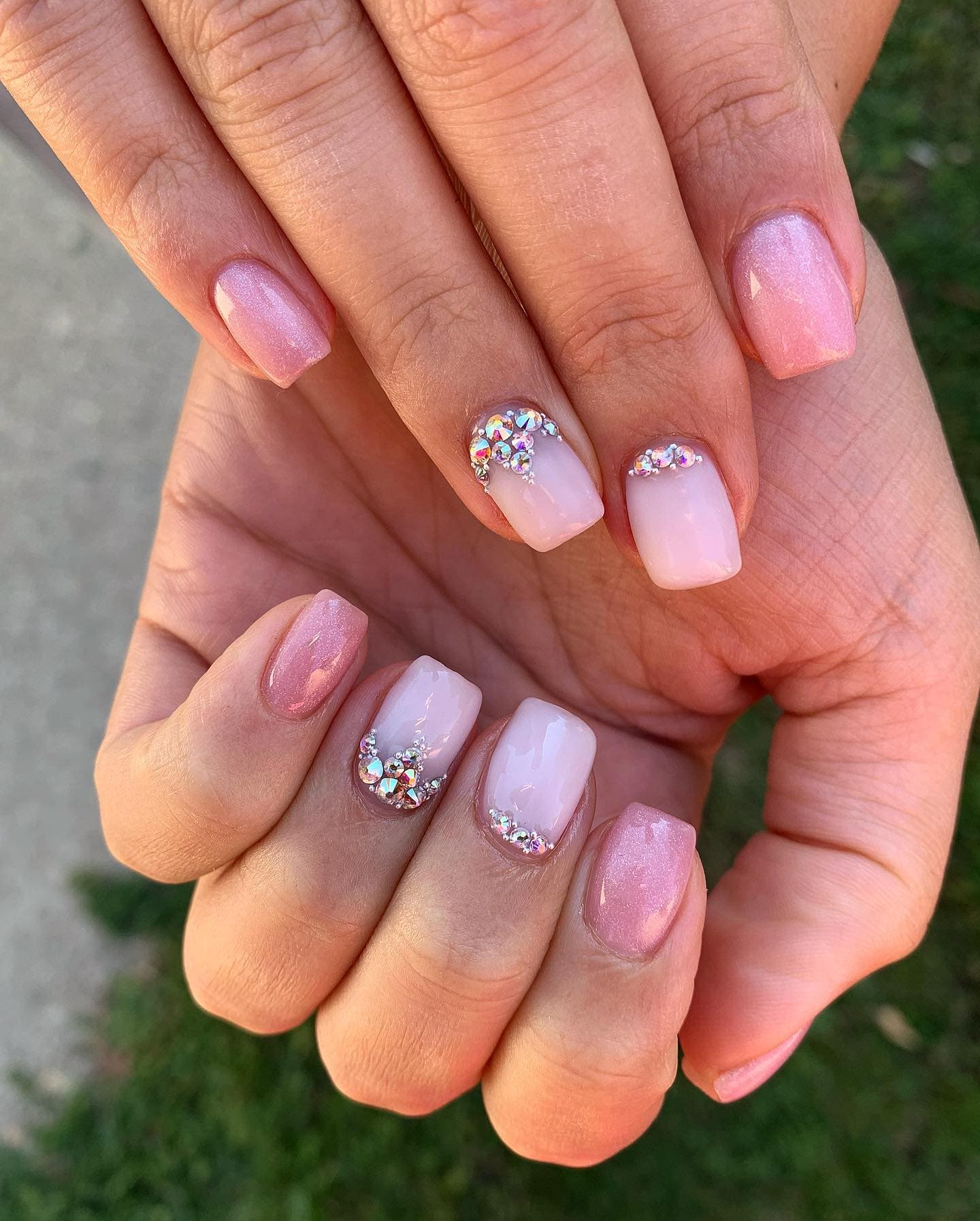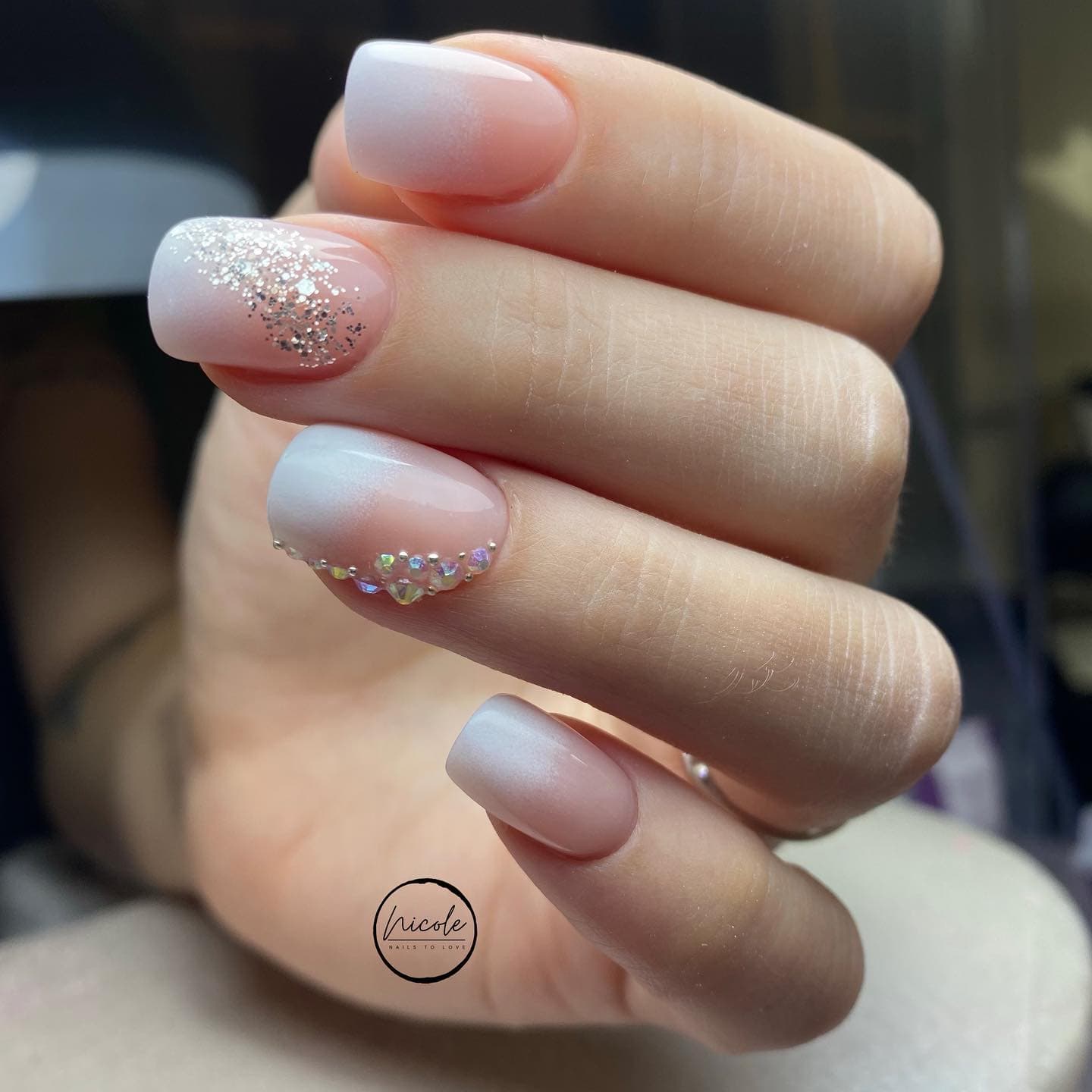 - Свадебный нейл-арт со стразами.