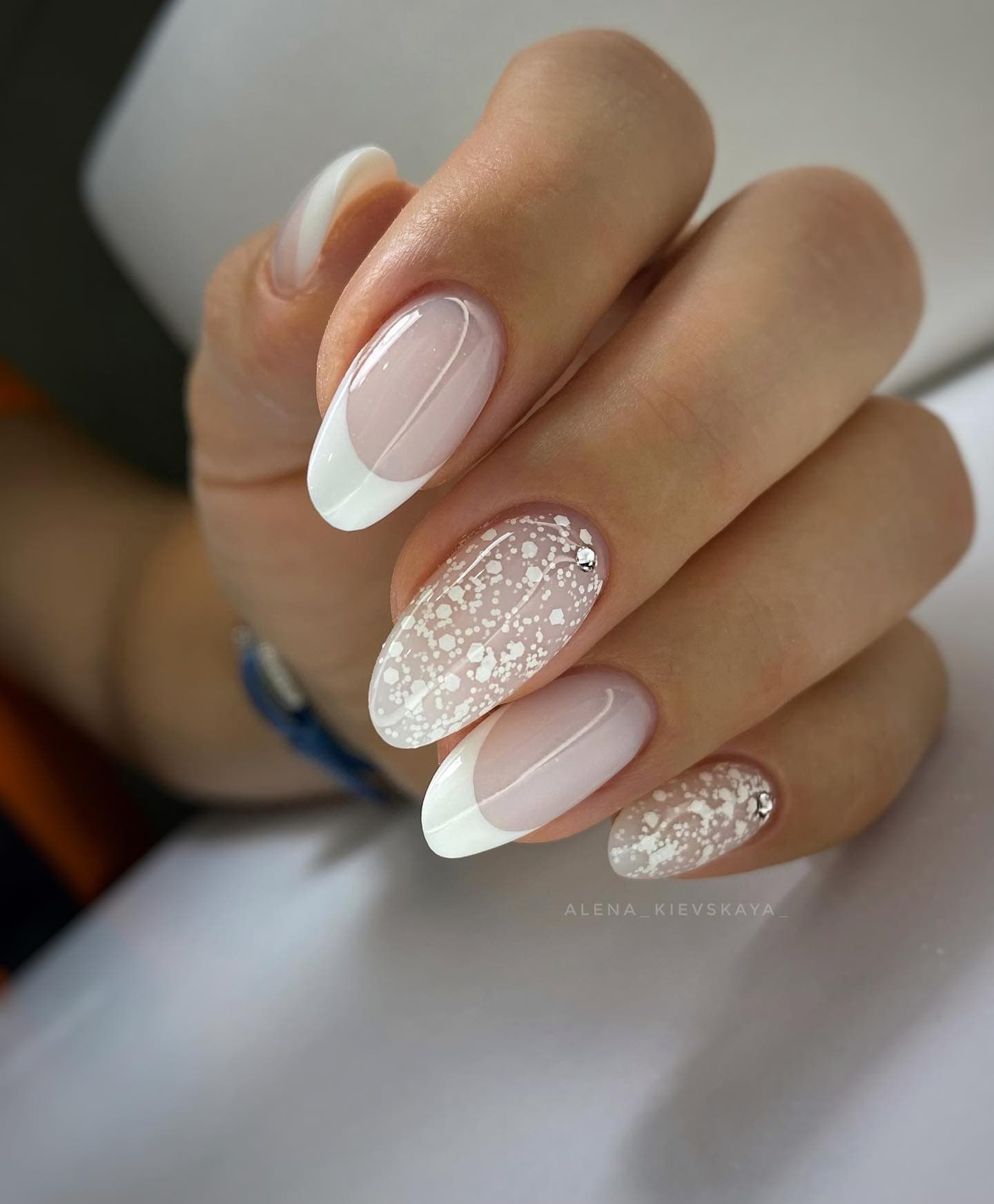Если всё же свадьба будет классической, то идеально подойдёт французский, нюдовый или лунный маникюр.