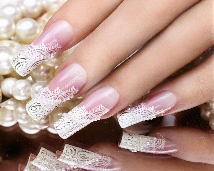 Кружевной маникюр для свадебного торжества