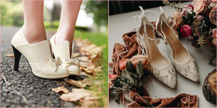 Подыскать обувь девушке в осеннюю пору на свадебное торжество не проблема, ведь у новобрачной есть масса вариантов. В начале сезона, несомненно, подойдут открытые или закрытые туфли и балетки. А вот в октябре лучше уже не рисковать и подобрать красивые ботиночки.