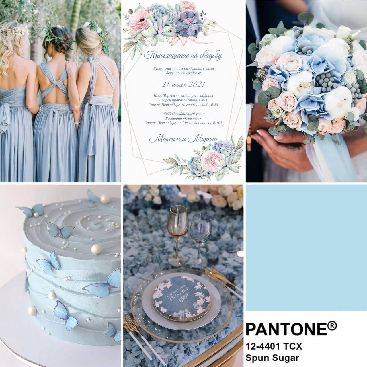 Голубая свадьба и голубые приглашения, цвет Spun Sugar
