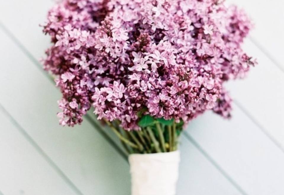Букет невесты в сиреневых тонах отлично сочетается с белоснежным свадебным платьем невесты. Выбор цветов для такого букета просто огромный: хризантемы, орхидеи, розы, гладиолусы, розы, астры, гиацинты и анемоны, а также сирень. С нежными сиреневыми и более вызывающими фиолетовыми цветами сочетаются практически все тона, но в особенности белый, лимонный и розовый. Если в качестве цветов вы выбираете лилии, то стоит позаботиться о выборе сорта с самым ненавязчивым запахом, так как легко можно довести невесту до головной боли. В последнее время огромной популярностью пользуются флористические композиции из цветов горной лаванды.