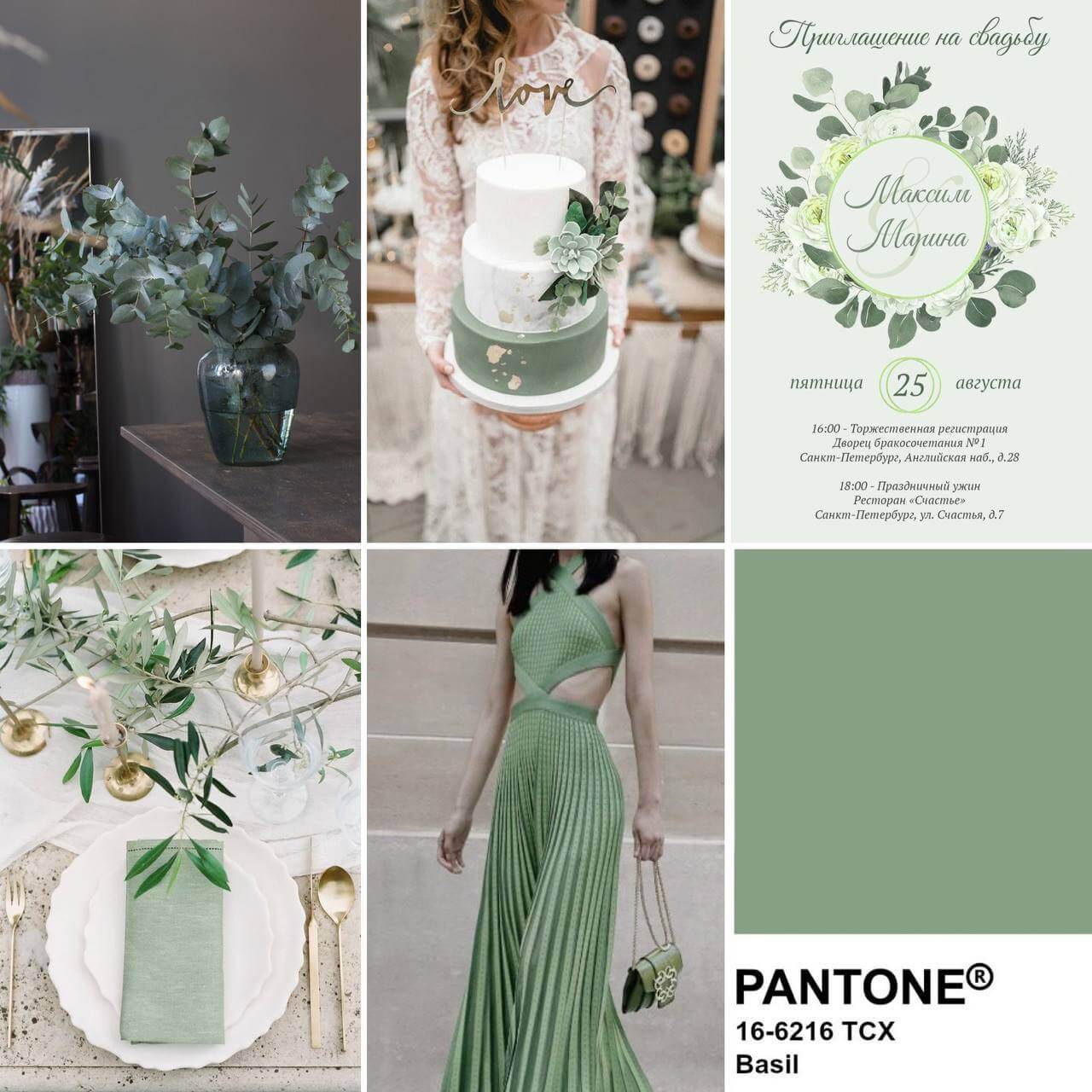 Зеленая свадьба и зеленые приглашения, цвет Basil
