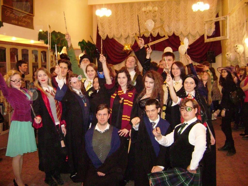 «Гарри Поттер». Любителям книг и фильмов о Гарри Поттере есть, где развернуться. Рассылать приглашения при помощи почтовой совы вы не сможете, зато сможете сделать их в виде писем из Хогвардса и украсить перышком. Жених может надеть любой костюм, желательно отрастить челку и надеть очки, как у Гарри Поттера. Можно сделать свадьбу Гермионы и Рона, если жених имеет характерную рыжину, а Поттером нарядится друг жениха. Стулья, столы, блюда, подсвечники – все должно быть стилизовано под старину. Столы можно украсить перьями, книгами, разложить волшебные палочки.