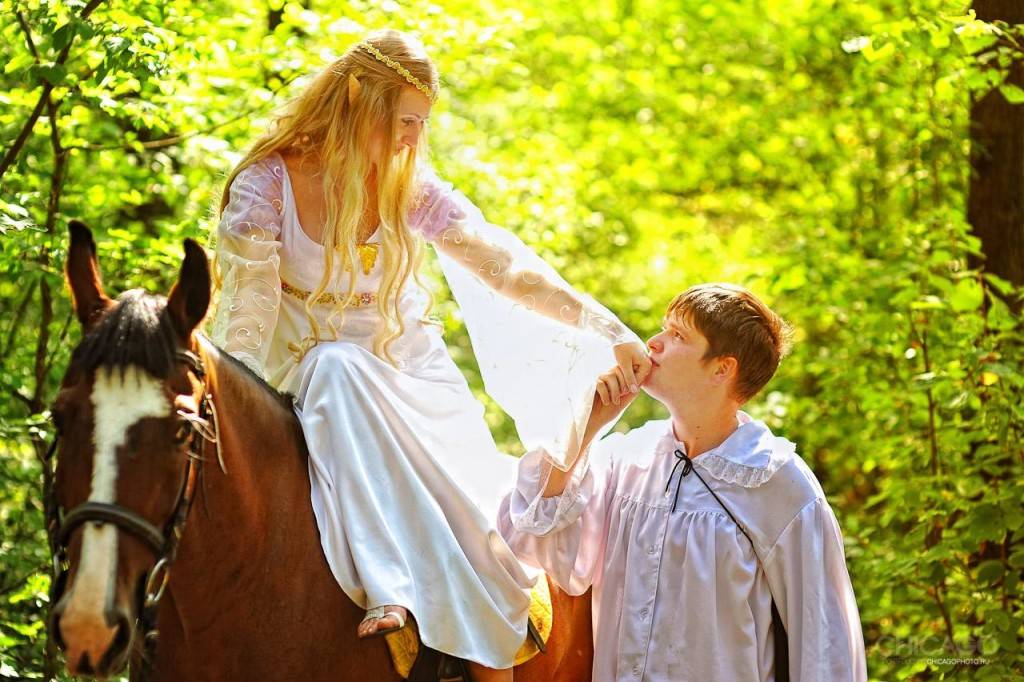 На свадебных фотографиях немного неуместно будут смотреться гости в современных костюмах и рубашках или платьях мини на фоне рыцарского антуража, поэтому об этом тоже стоит позаботиться заранее.