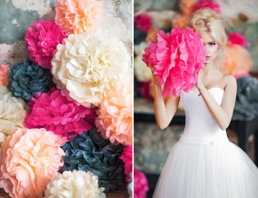- вы можете сделать букет из специальной бумаги, это даже может быть букет из цветов в полный рост невесты.