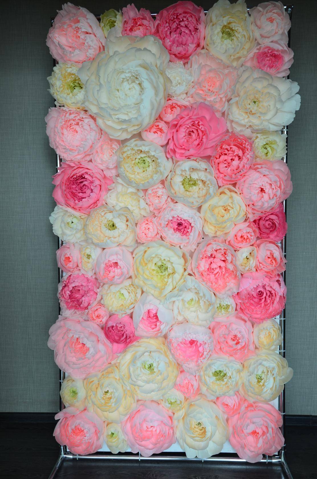 Цветами огромных размеров можно украсить стену банкетного зала, к примеру место для фотографии на память, либо фон молодоженов. Эффектно будут смотреться огромные бутоны роз лежащие на полу: