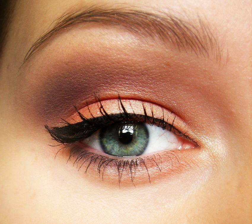 Голубые глаза усиливаются медью, золотом и теплым коричневым цветом. Более теплый тонированный лайнер, как глубокий шоколадно-коричневый, поможет определить ваши глаза, все еще выглядя естественно. Если вы хотите вечерний макияж читайте эту статью.