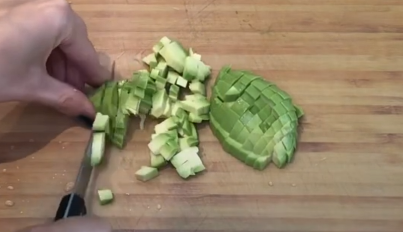- Оставшуюся мякоть порубить мелкими кубиками и выложить в миску.