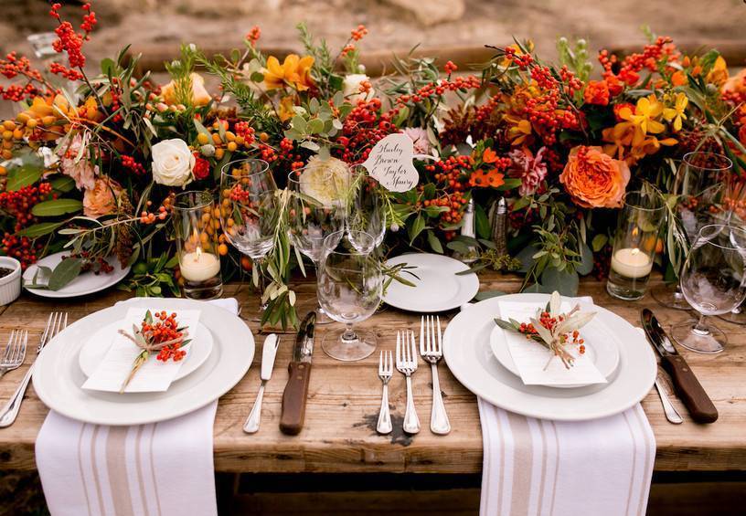 Карточки должны сочетаться с другими декоративными элементами. В оформлении лучше придерживаться единого стиля со схемой расстановки столов.