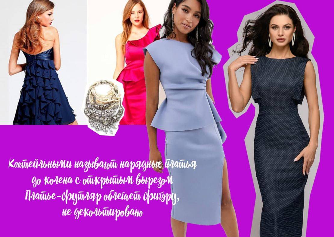 Коктейльными называют нарядные платья до колена с открытым вырезом. Они менее торжественны, чем вечерние платья «в пол», поэтому и более универсальны. В любой ситуации с непонятным дресс-кодом можно надеть в меру нарядное коктейльное платье и быть уверенной, что вы выглядите уместно.