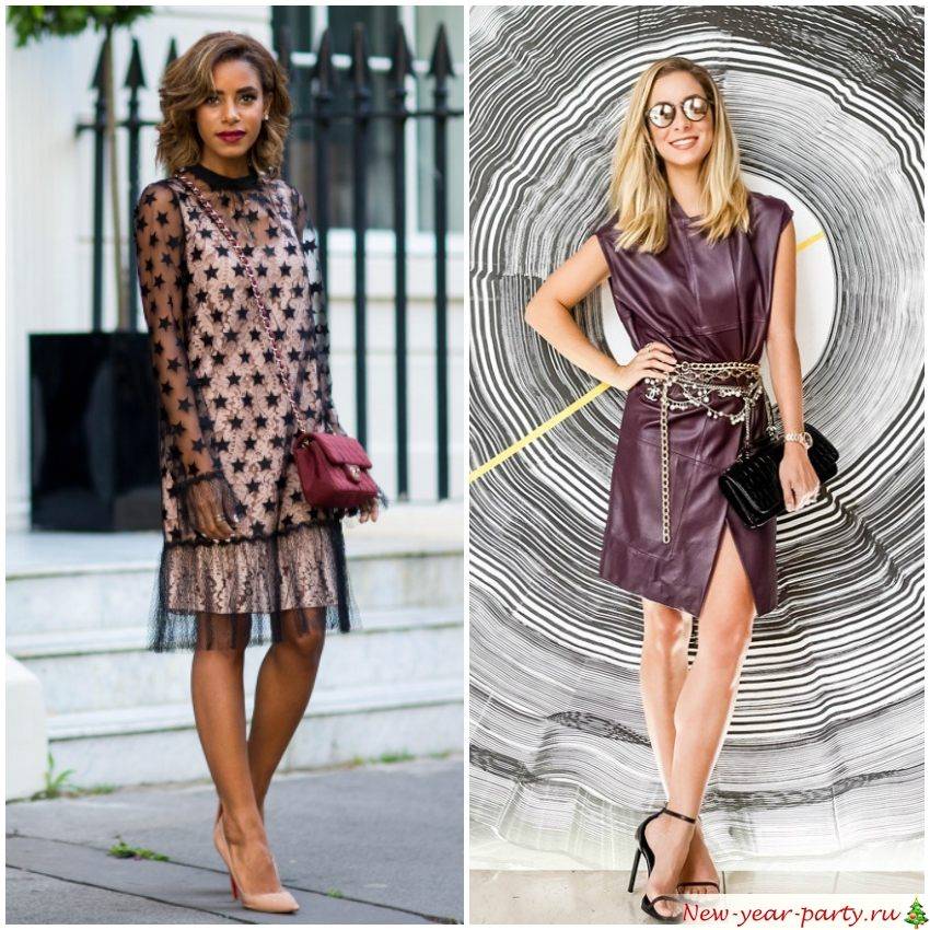 Это может быть запринтованное платье-сетка, наряд из ткани атлас, шелк или сатин, драпированные платья из кожи.