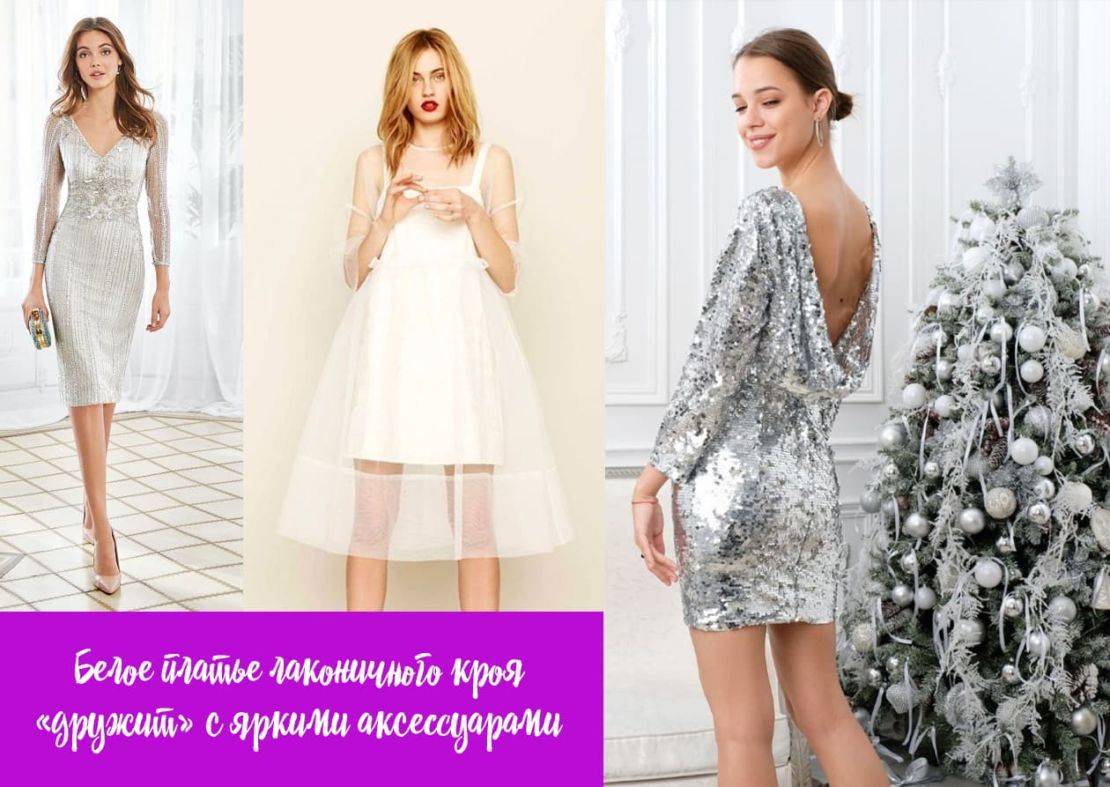 А это тенденция текущего десятилетия. Белое платье лаконичного кроя «дружит» с яркими аксессуарами. Часто оно имеет А-силуэт.