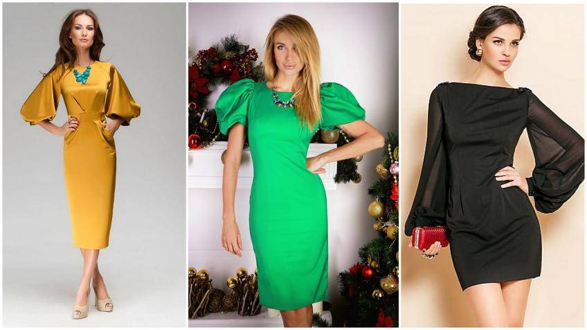При выборе платья на торжество обращают внимание на крой рукава. В моде платья с объемными фонариками и модели фасона «летучая мышь»
