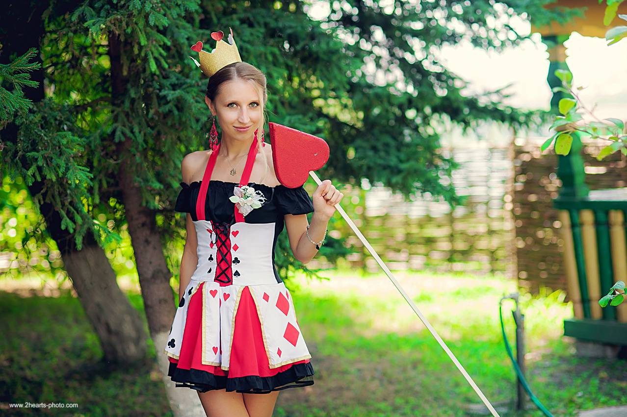 Какая тематическая свадьба без соответствующих нарядов? Образ невесты Алисы – яркий, озорной, с чудинкой. Можно даже полностью войти в образ, нарядившись в нежно-голубое платье с кружевным передничком. А можно просто выбрать платье небесного цвета и подпоясаться белоснежной лентой. На такой тематической свадьбе портал Свадебка.ws считает уместными даже короткие, а то и вовсе ассиметричные свадебные платья.