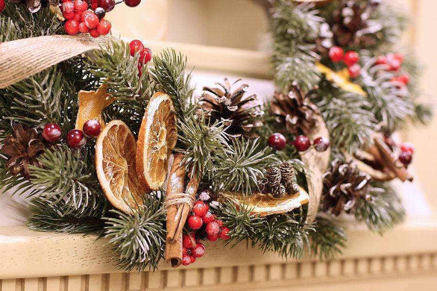 Как сделать рождественский и новогодний венок на дверь, мастер класс