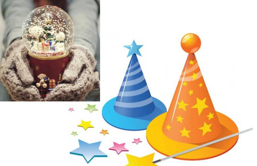 Вместе с одноклассницей, с которой в школьные годы дружили и любили дурачиться, решили переодеться в волшебников: надеть колпачки (такие, знаете, деньрожденские), взять в руки «волшебные» палочки и «магический» стеклянный шар (подойдет также любая символичная игрушка).
