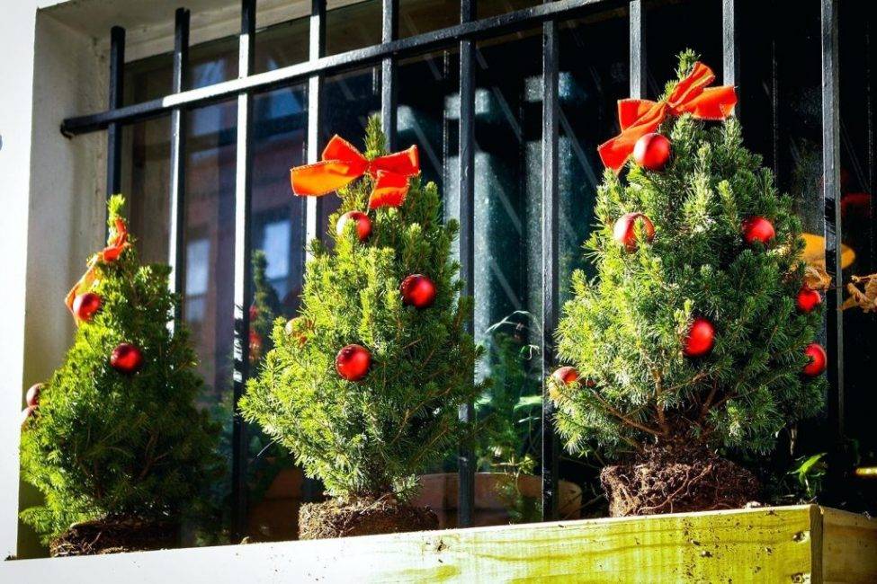 - Живые хвойники на окне. Это дорогое удовольствие. Перед тем как покупать мини-елочку, крошечную тую или можжевельник, поинтересуйтесь, как за растением ухаживать. Из-за горячих батарей воздух на подоконнике очень сухой, что неблагоприятно скажется на хвое. Но рискнуть в любом случае стоит. Если украсить живое деревце мини-шариками, смотреться оно будет очень красиво. Ну и плюс ни одна искусственная елка не сравнится с живой, которая чудесно пахнет хвоей. Как только праздник закончится, перенесите хвойник в прохладное место, а весной, когда минуют возвратные заморозки, высадите в саду или на даче.