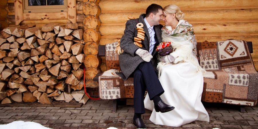 Кроме свадебных нарядов на молодоженах должны быть валенки, а плечи невесты укройте пуховой шалью.